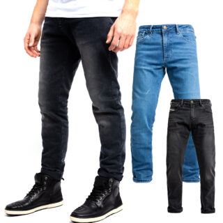 クラシカルなスタイルのレギュラーフィットジーンズですが、スペックは高水準。ストレッチも効いているので、バイクの乗り降りも負担になりません。