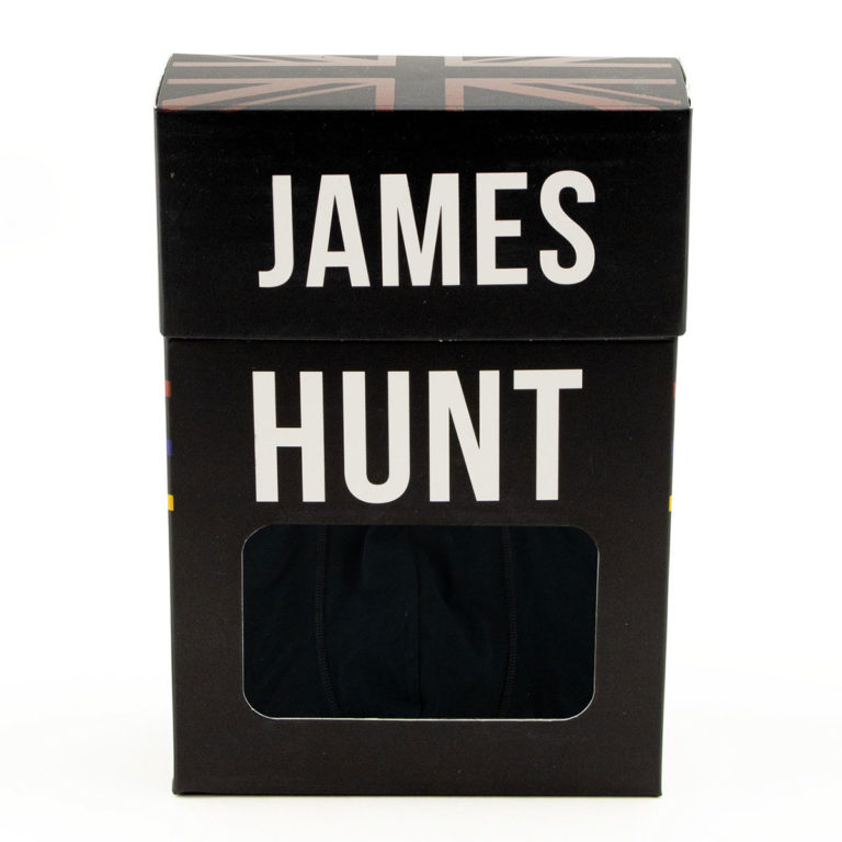 当時のライバルだったニキ・ラウダとは正反対なキャラクターながらも、お互いレーサーとして尊重し合い、1976年にはマクラーレンで最初で最後となるF1ワールドチャンピオンを獲得するという快挙を成し遂げています。そんなプレイボーイな一面を象徴とさせるジェームス・ハントのボクサーブリーフがオフィシャルアイテムとして登場しました。