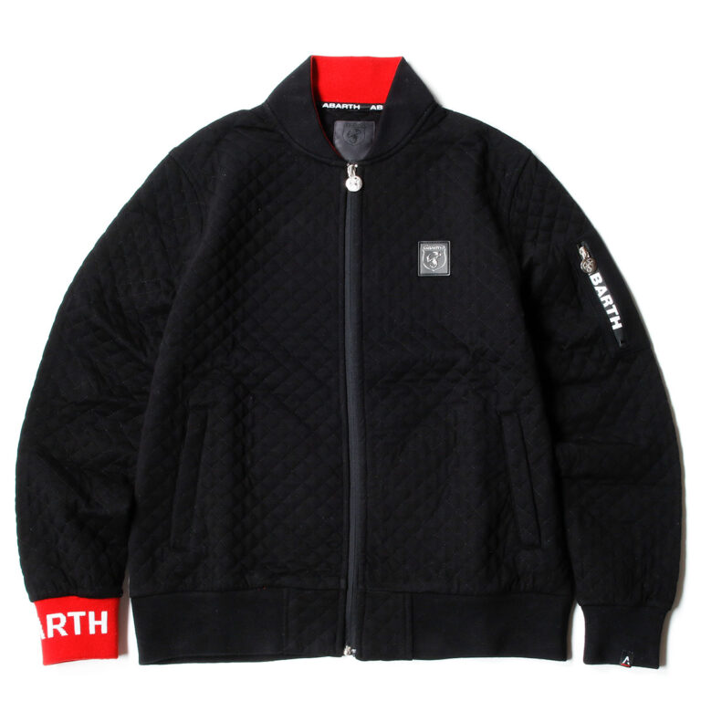 前身頃と後ろ身頃は細かなキルティング調の素材を採用。左の二の腕にジッパー付きの小さなポケットと、右リブ部分にABARTHのロゴがあしらわれています。