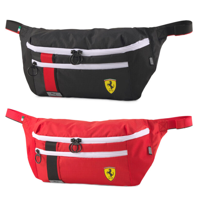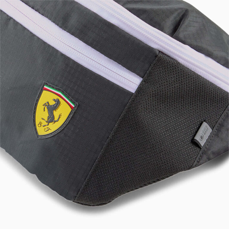 フェラーリのエンブレムがあしらわれたウエストバッグ。
