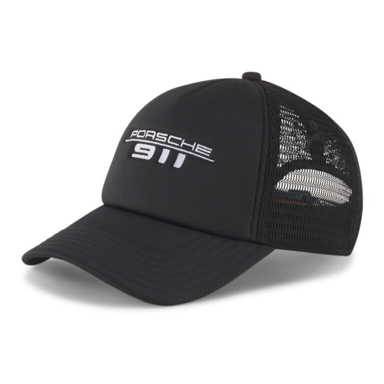 ポルシェ911の刺繍ロゴがあしらわれた、ポルシェレガシーコレクションのベースボールキャップ。