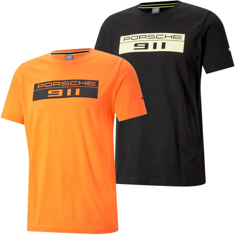 胸元に大きくプリントされたポルシェ911のロゴが印象的なデザインにまとめられています。
