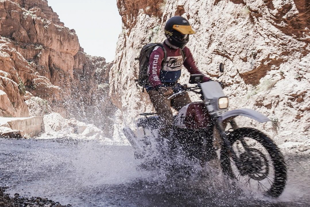 ヴィンテージのエンデューロレーサーにインスパイアされ、デザインされたMARATHON JERSEY。ダートの土煙がよく似合います。