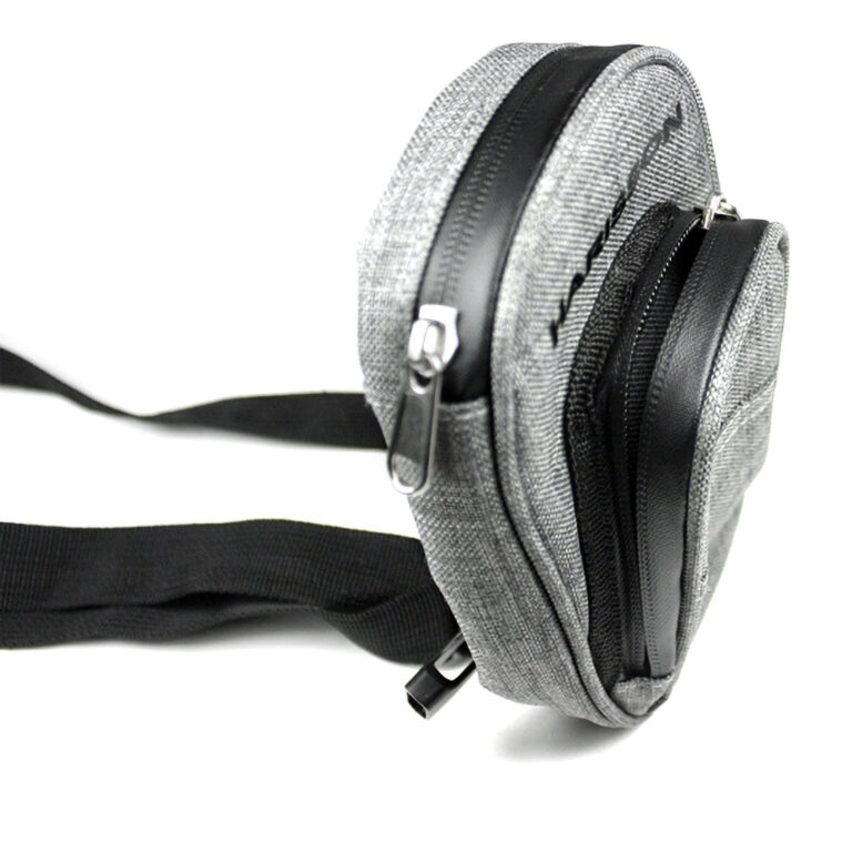 バックルで腰と膝の2ヵ所に巻きつけるタイプとなっており、体型に合わせてベルトの長さ調整も可能。メインコンパートメントはタバコの箱が収まるサイズ感で、多少厚みのあるアイテムも収納できます。また止水ジップがついているので、雨水の浸入から防いでくれます。