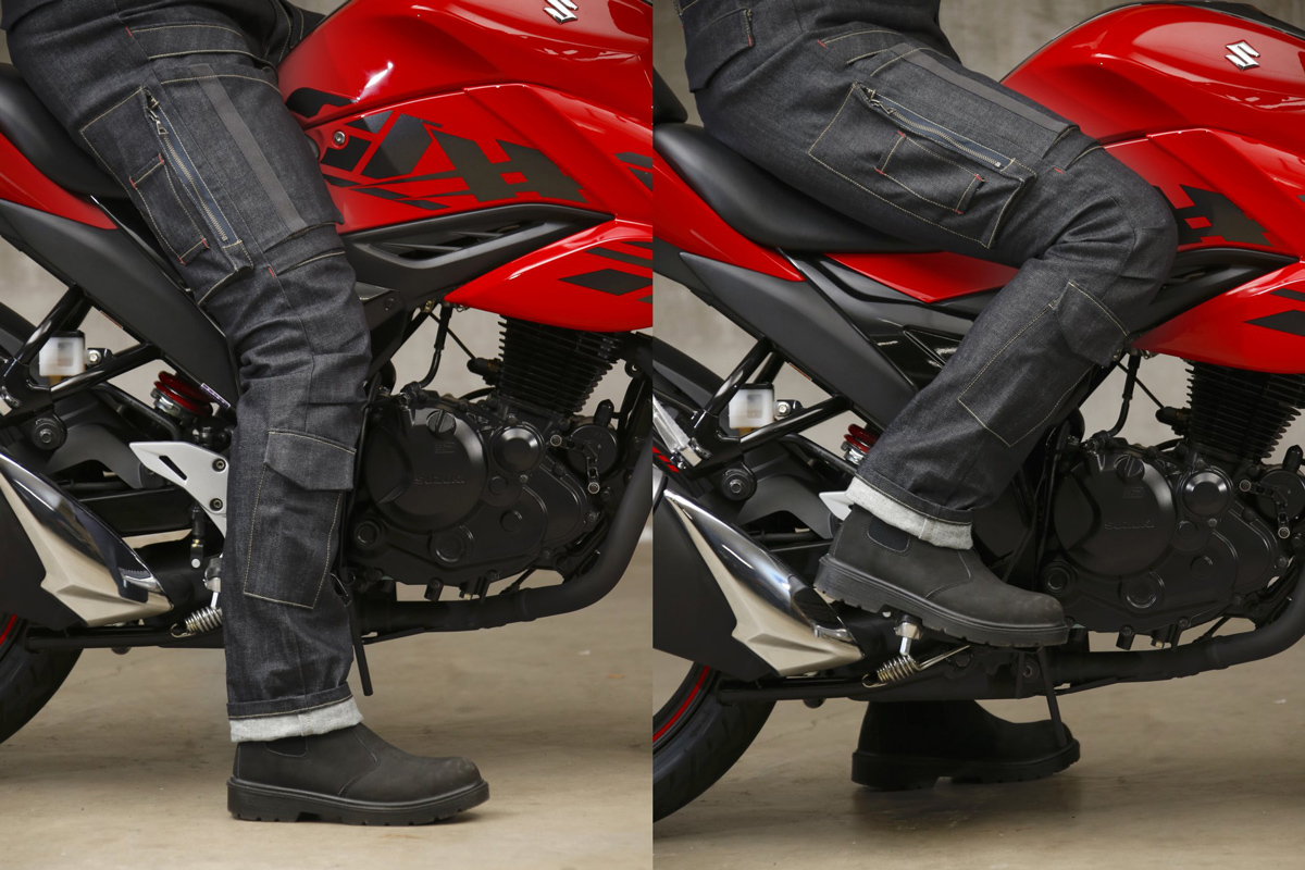 立体裁断で膝の曲げ伸ばしがしやすく、快適なライディングフォームを実現。