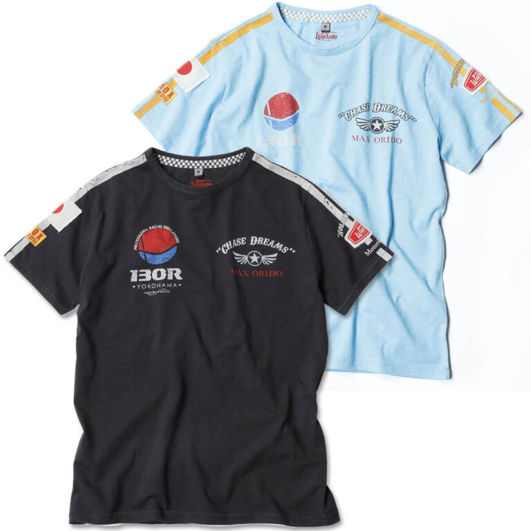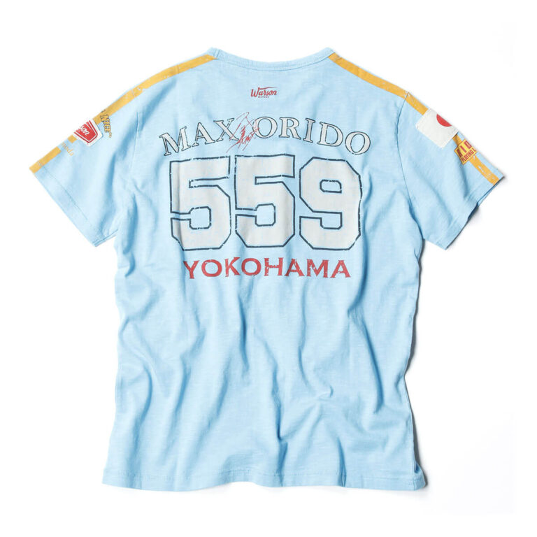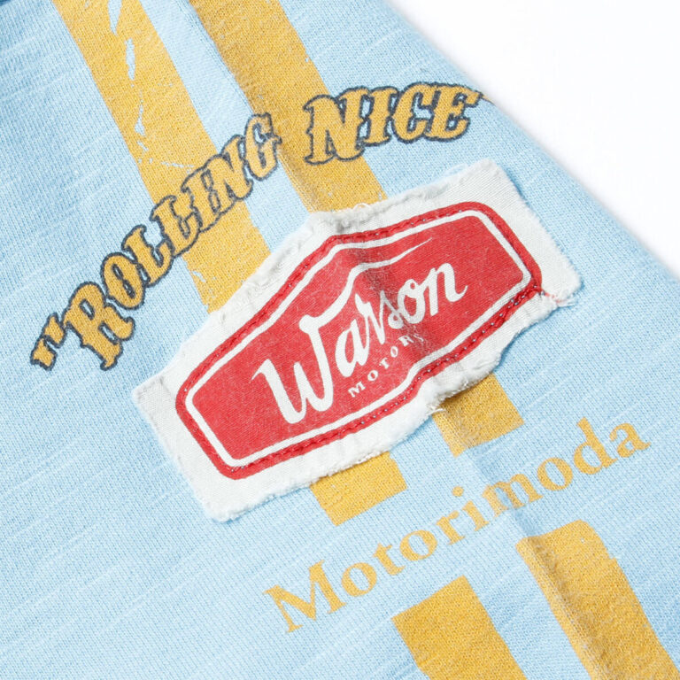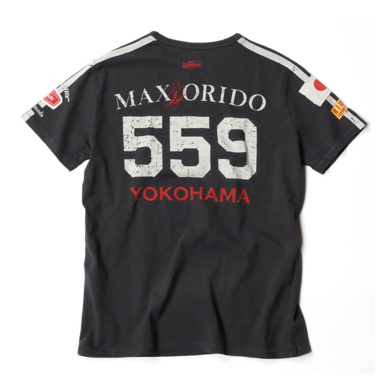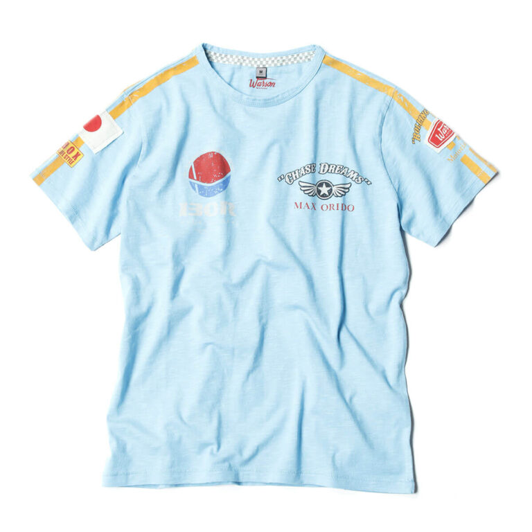 今回のコラボレーションTシャツでは、MAX ORIDO RACINGがテーマとなっており、Warson Motors特有のヴィンテージ感を醸し出した色味や刺繍ワッペン、レーシングストライプといった風合いは、60年代や70年代のモータースポーツのカラーを出しつつ、普段使いとしてもお使いいただける、バランスの良いデザインに仕上げました。
