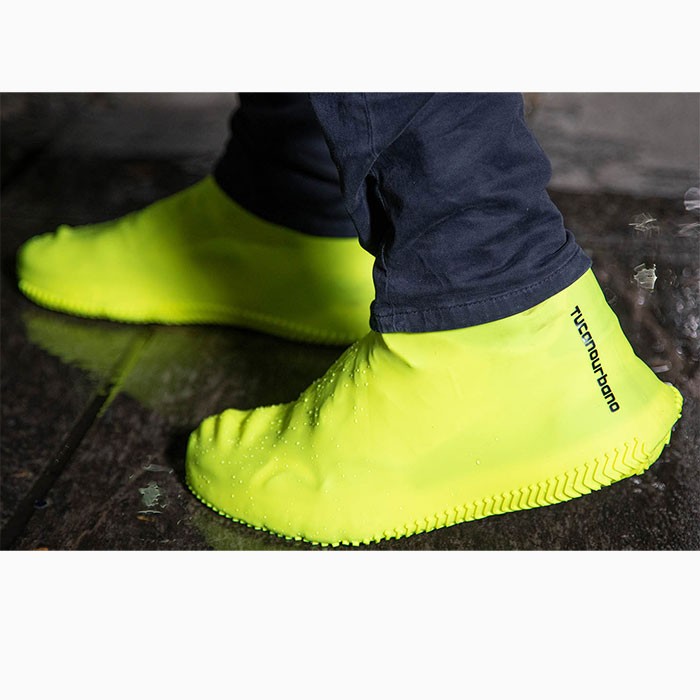 シューズが濡れてしまうことを防いでくれるシリコンタイプのシューズカバー。コンビニのタイルや床が滑りやすいタイルなどの上では大変滑りやすいですので、フッテリーネを装着して歩く際には、バイクから降りたのちに駐輪場から会社・家までの移動距離を歩く程度に留めてください。