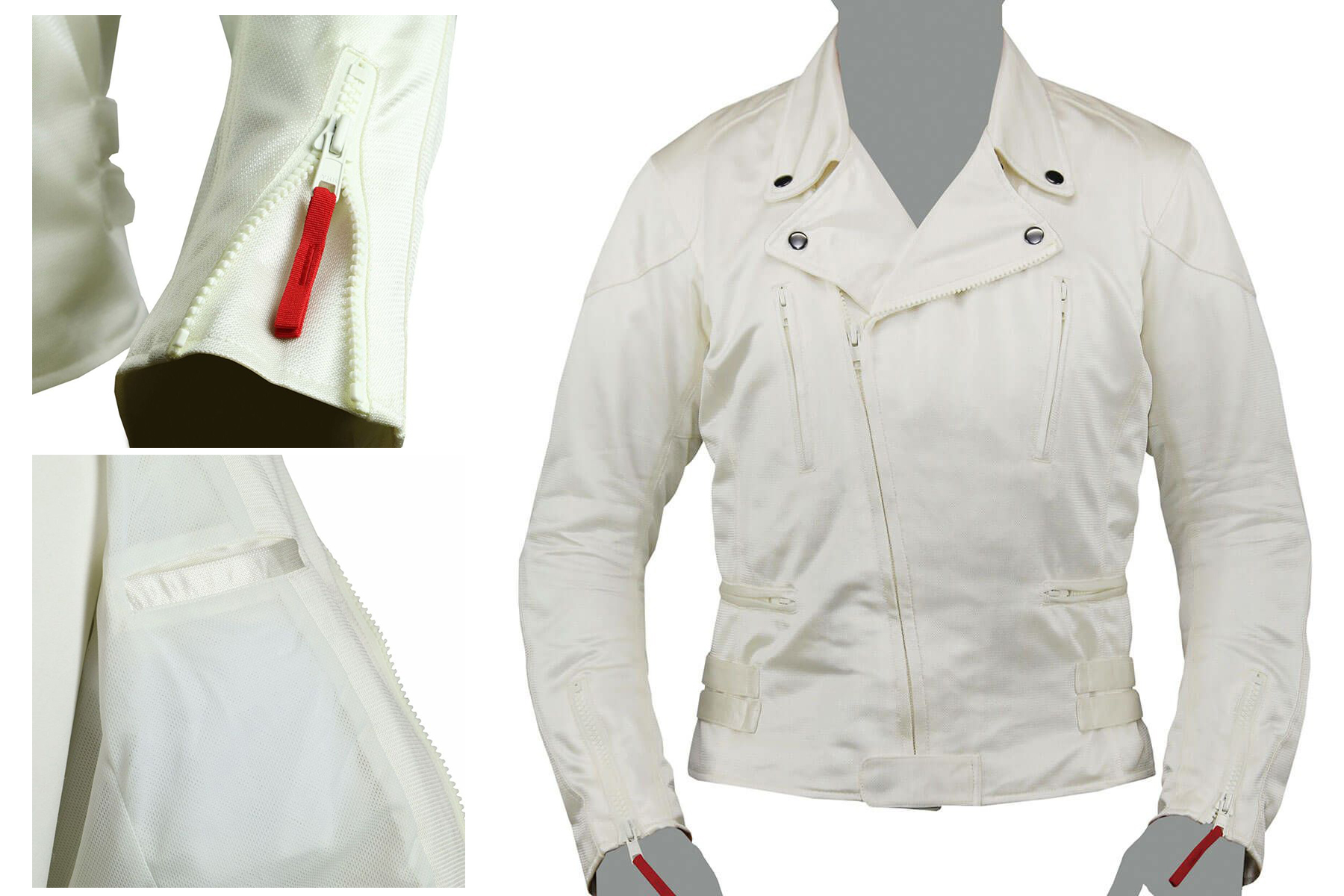 SHINICHIRO ARAKAWAから新作メッシュジャケットが入荷しました。生地全体が通気性の高いフルメッシュ仕様。肩の可動域を高める特殊なパターンを採用し、まるで何も着ていないかのような着用感が特徴です。定番のダブルライダーススタイルをSHINICHIRO ARAKAWAテイストでアレンジした今夏一押しのアイテムです。