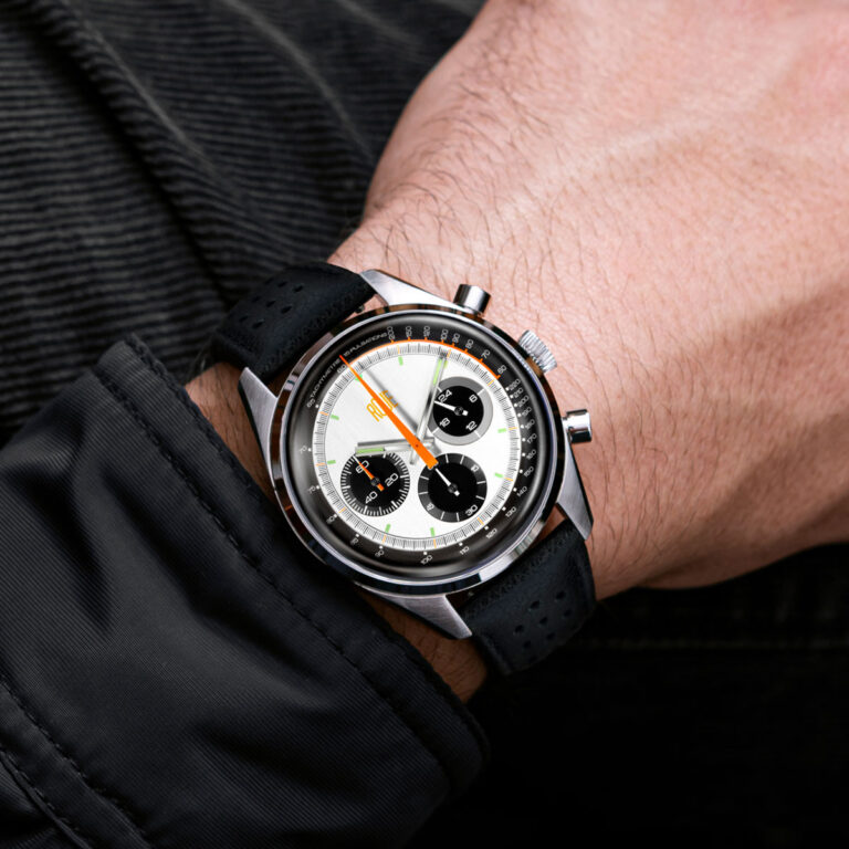 TPSはROUEの公式オンラインショップのみでしか販売されておらず、1967年のニュルブルクリンク1000kmレースを制したポルシェ910をオマージュしたモデルで、裏蓋に刻まれた910のシルエットが特徴的です。