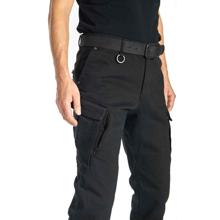 カーゴポケットの内側にジップ開閉式ののベンチレーションを付属。ポケットはバタつき防止のため、スナップボタンで留めることが可能。裾部分はブーツやシューズにフィットするように、スナップボタンで調節可能。米国デュポン社製の高強度素材(ケブラー®)を裏地とステッチに使用し、耐久性・安全性を高めています。
