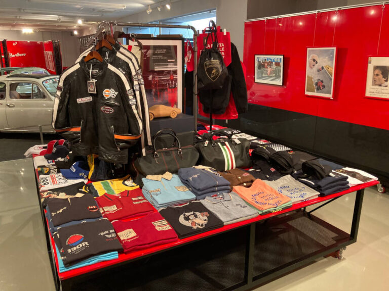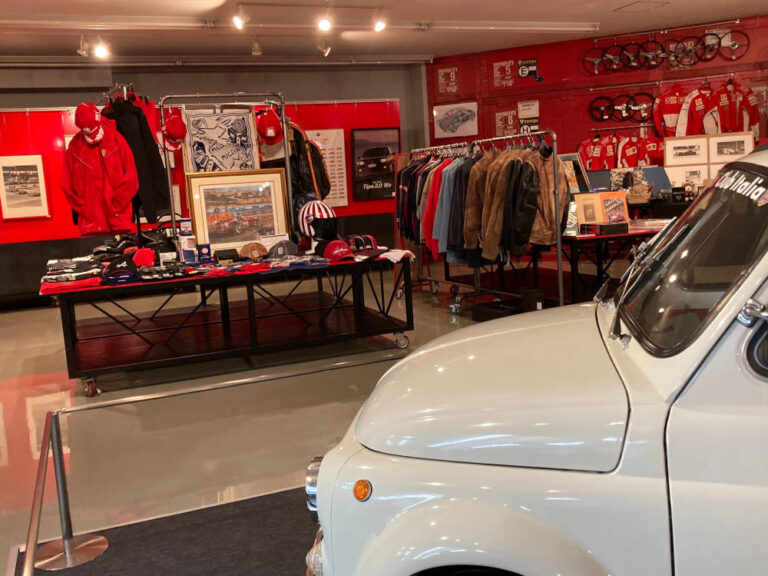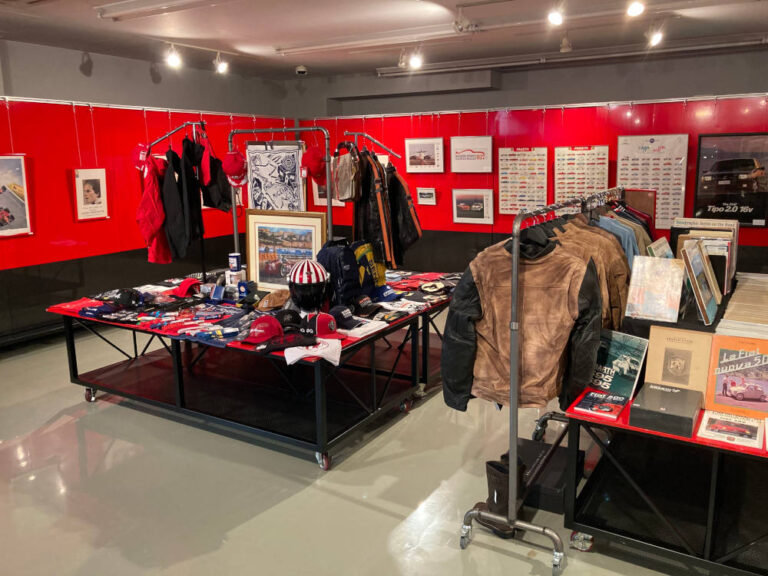 現在開催している常設展では、FIAT 500Fをベースに前期型の屋根に改造された"特別仕様"のモデルや、カルロ・アバルトが元オーナーだったヒストリーを持つ、貴重なFIAT ABARTH 695 ASSETTO CORSEをはじめとした車両も展示されており、イタリアンな雰囲気の中でお買い物もご堪能いただけます。当物販スペースでは、フェラーリやランボルギーニ、アバルトのオフィシャルアイテムをはじめ、ワーソン・モータース、ミッレミリアなどのアイテムを販売中しておりますが、今後も続々とアイテムを投入していく予定です。今回の常設展は年末まで行われますので、お近くの方は是非お立ち寄りください。