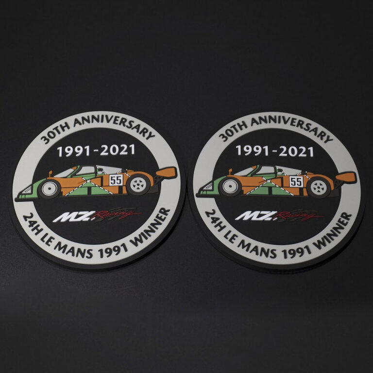 柔らかい素材で出来ているので、無用な音を立てたり周りの小物を傷つけることもありません。複雑なデザインのマツダ787Bのカラーリングを精密に再現しました。裏面には、初回ロット限定でルマン優勝を祝したテキストをプリントしました。