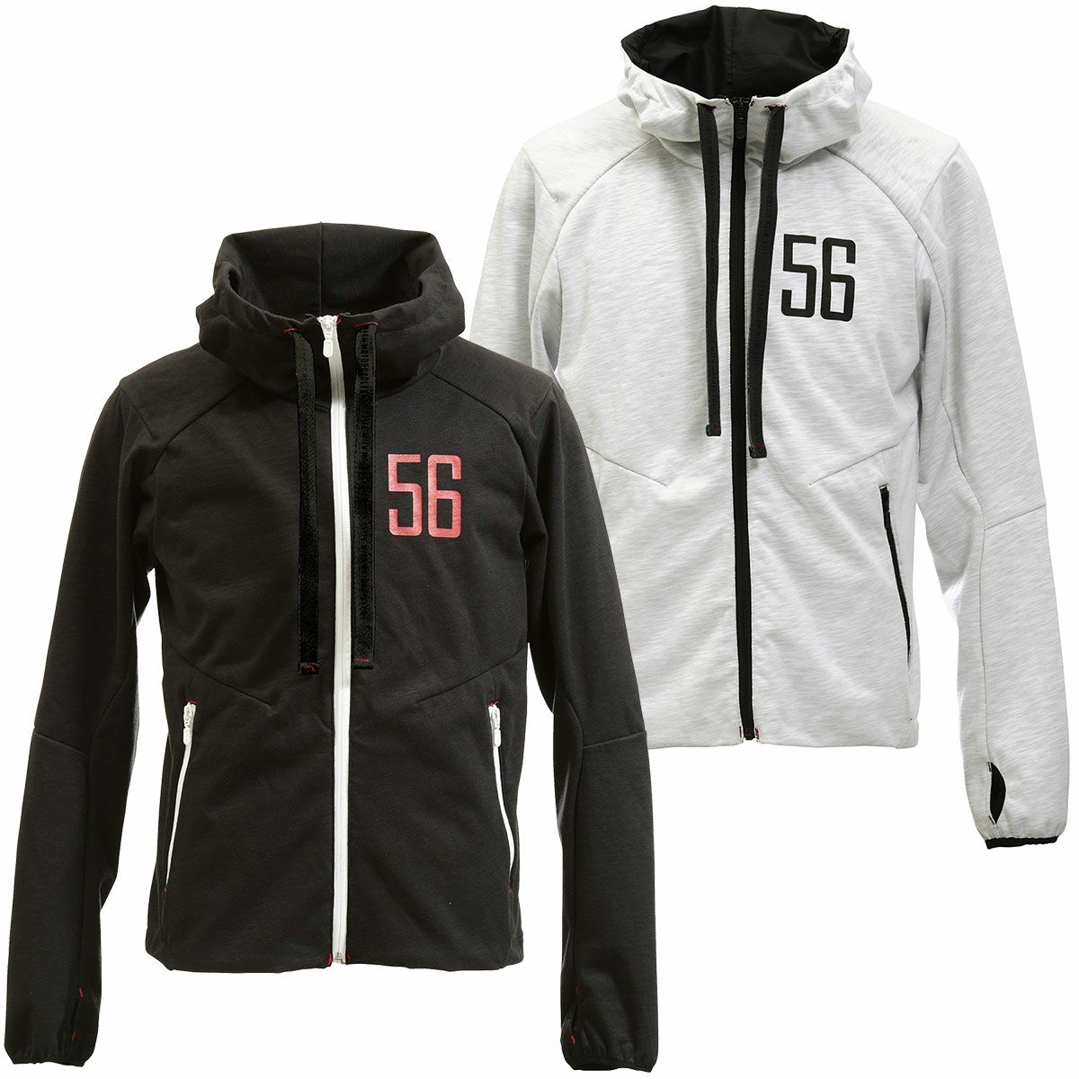 通常は温度調節のためにアウターとインナーの間において利用されることの多いミッドレイヤーですが、胸元の56と背中に大胆な FIFTY-SIX のプリントをあしらうことで、アウターとしてのシーンも見込める一年を通して活躍できる、まさにユーティリティーなパーカーです。