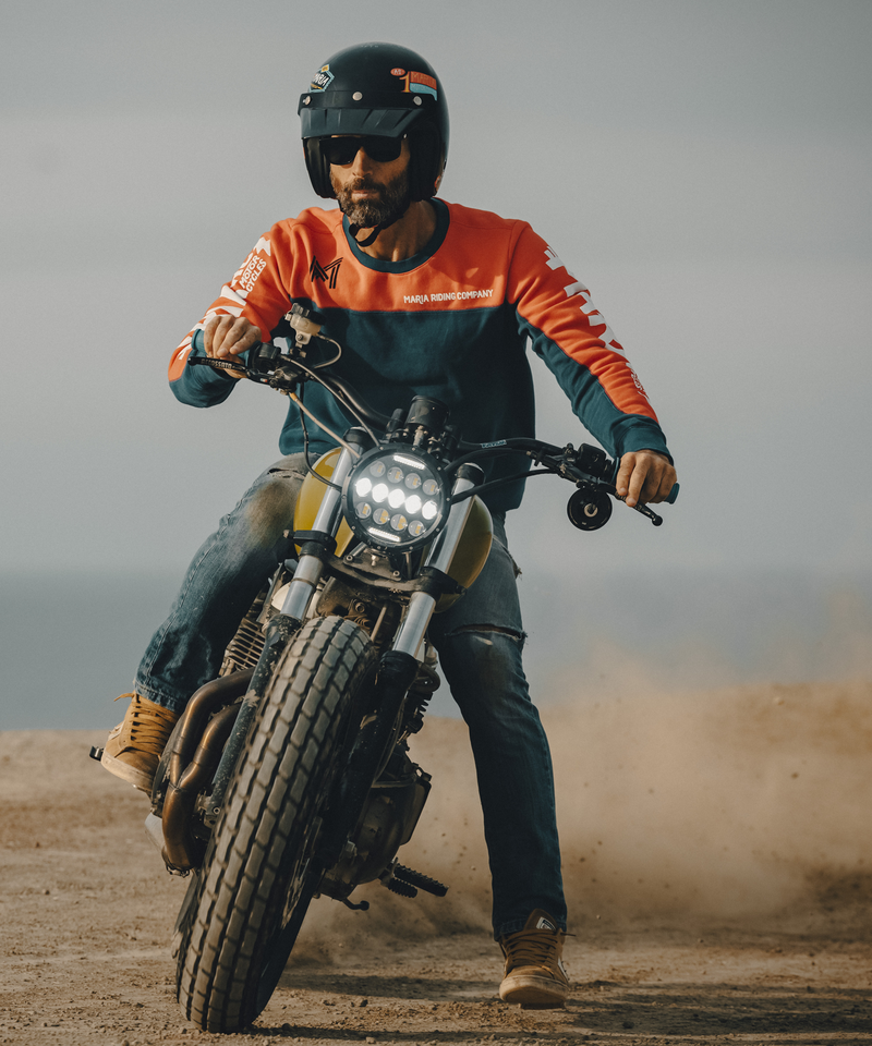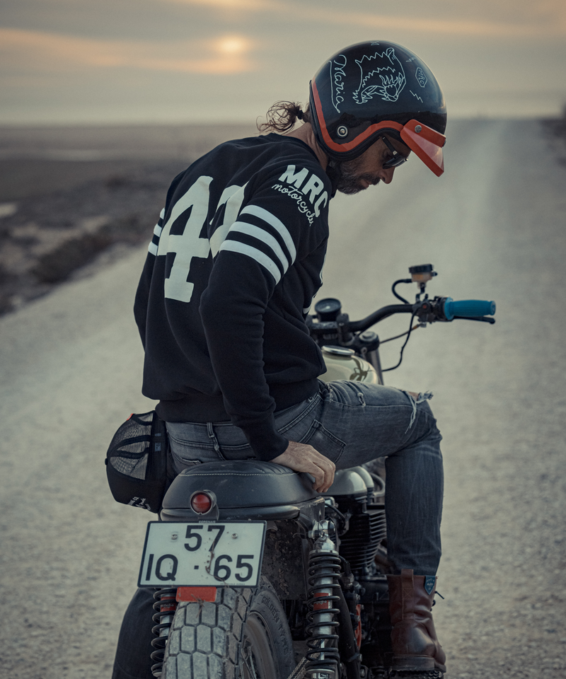 MXジャージのテイスト溢れるスウェットシャツ。こちらも厚手のヘビーウェイトコットン100%を採用。バイクに乗っていない時のコーデにもぜひお勧めしたい1着です。