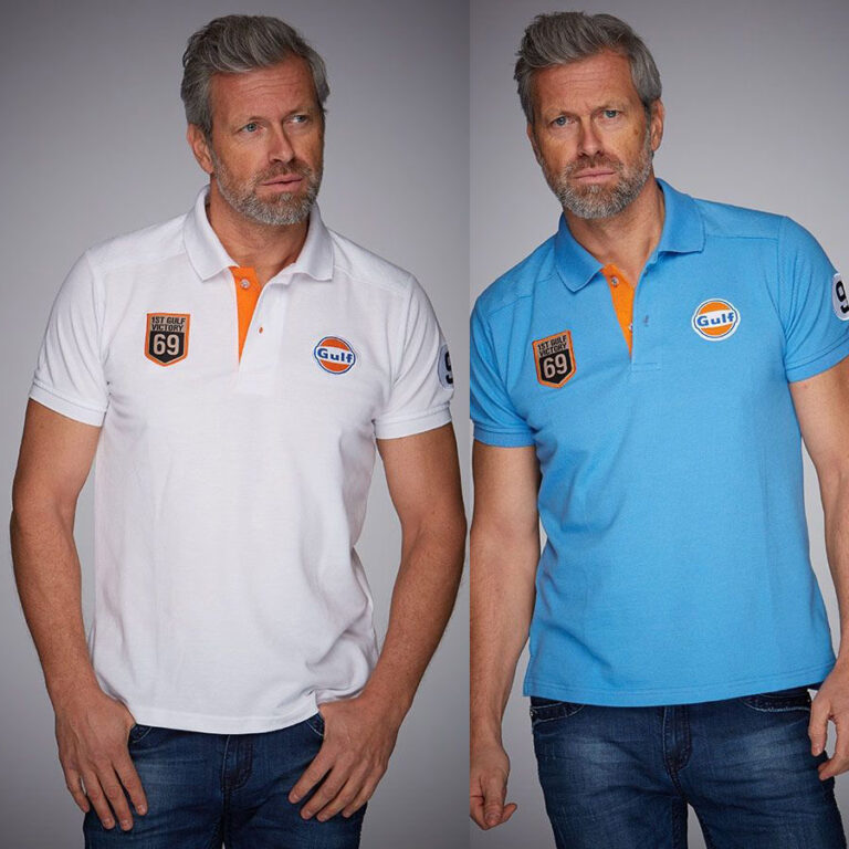 1968年と1969年のル・マン24時間レースを制したガルフレーシングのフォードGT40をテーマにしたポロシャツ。