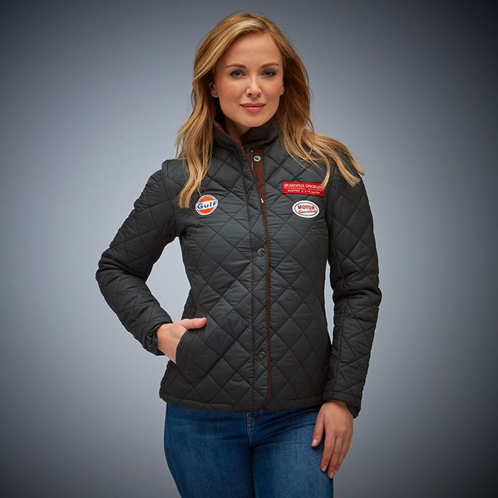 ガルフの刺繍ワッペンがあしらわれたレディース用のナイロンジャケット。