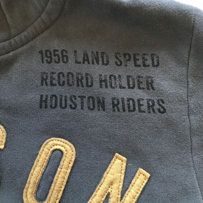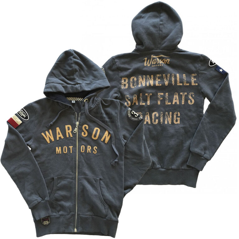 バイクでおなじみのトライアンフが1956年の「ボンネビル・スピードウェイ(Bonneville Salt Flats International Speedway)」の最高速チャレンジにて、 214.4マイル(時速345キロ)のレコードを樹立した「Texas Cee-Gar」をインスパイアしたレディース用フーディー。