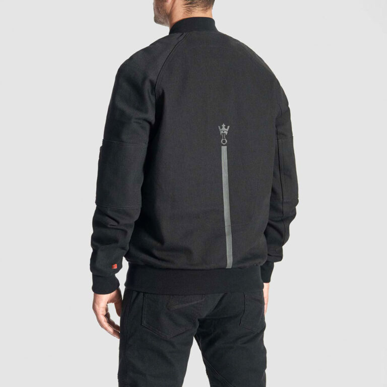 ライディング時の裾上がりを考慮し、背中の丈が長めに作られておりますが、パンツとジャケットを繋げるループが付いているので組み合わせると高速走行の際のバタつきを軽減。背面には反射素材を使い描かれたブランドのロゴとシングルラインがパンドモトの世界観を演出しております。