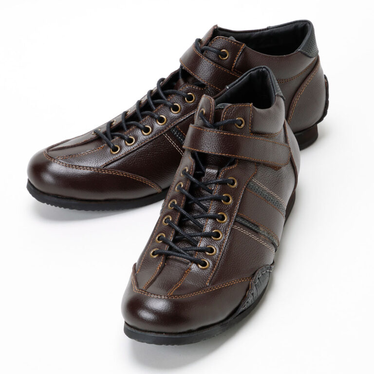 アッパーのデザインは、牛革とNeu interesseのシャッテンに使用されているカーボンパターンのハイブリッドレザーとのコンビの組み合わせがベースとなっておりますが、ダークブラウンのみ、ほぼ牛革でまとめたデザインとなっております。一見、細身でタイトな印象を受けますが、実際に履いていただくとその履きやすさにお気づきいただけるはずです。またバイクでもご使用いただけるように、店頭では別売のシフトガード(税込2,200円)にて販売しております。