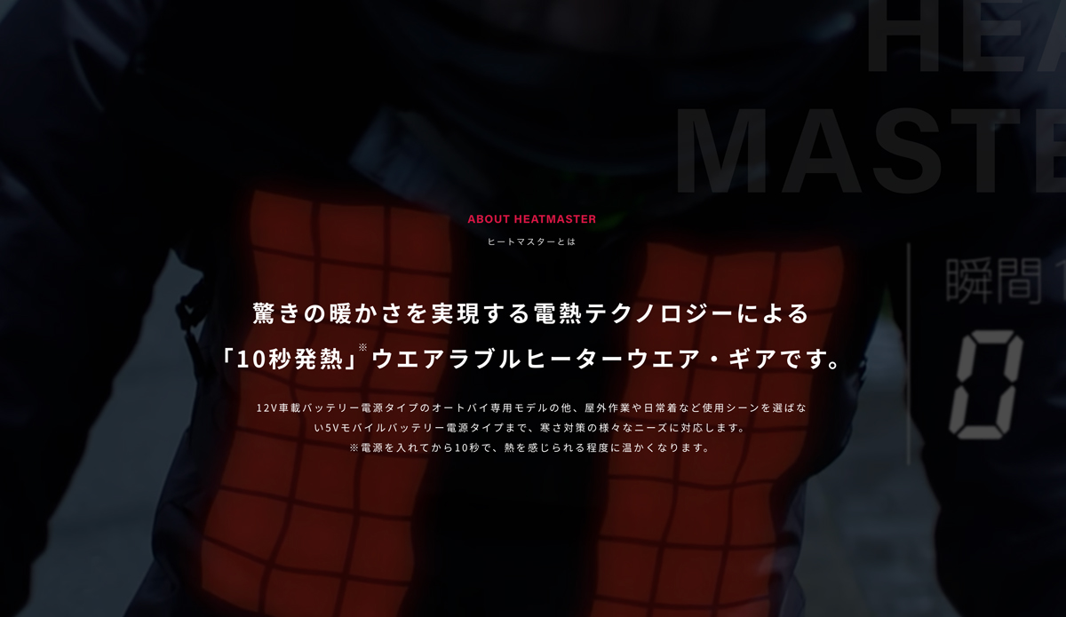 Heat Master | 真冬も快適 電熱ウェア予約受付中