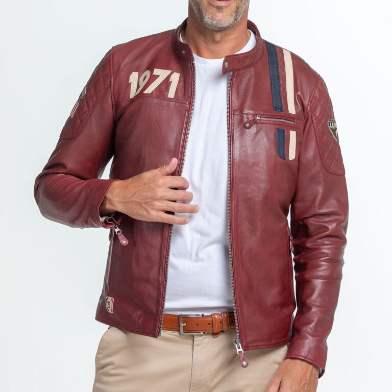 メインとなるレザージャケットに関しては、シングルのライダースジャケットに、映画「栄光のルマン」の劇中に登場する、M・ディレイニーのレーシングスーツのデザインを取り入れたようなテイストに仕上がっています。2輪+4輪のテイストが絶妙なバランスで表現されていますので、バイク・クルマ、どちらにでも合わせることが可能です。プロテクターが必要な方は、ジャケットの下にインナープロテクターをご着用ください。