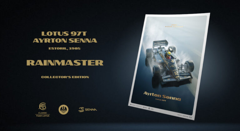 今回のポスターシリーズでは、予選でポールを獲得し、ウェットコンディションとなった決勝では、スタートからトップを独走。ペースを緩めることなく、攻めの走りで3位以下を周回遅れにした当時の姿が忠実に再現されてます。世界限定1000枚でゴールドのエンボス加工が施された「コレクターズ エディション」2種と、世界限定2000枚の「リミテッド エディション」2種、合計4種類が用意され、ともにクラシック・チーム・ロータスとアイルトン・セナ財団のオフィシャル商品として認定されている、お墨付きのポスターです。