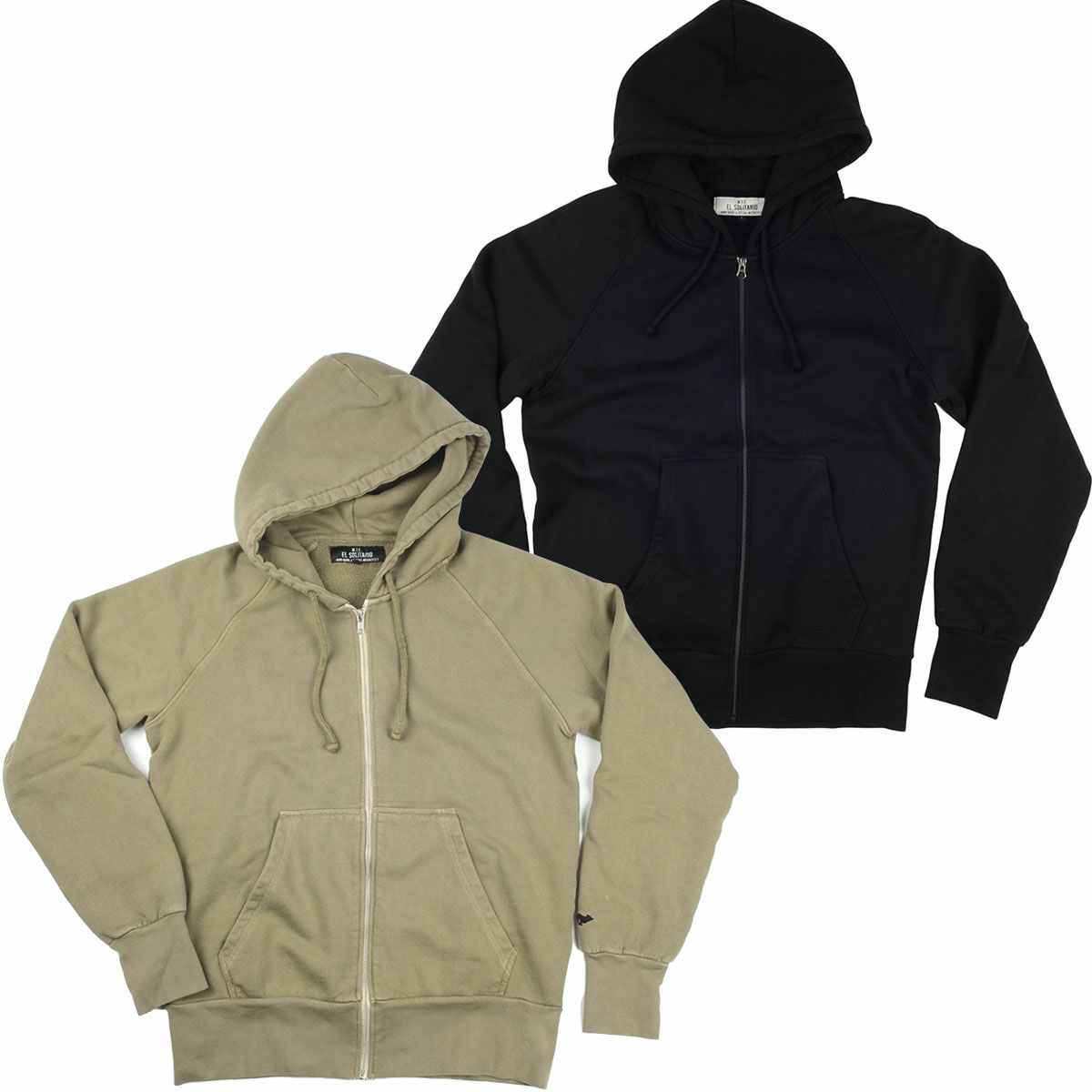 フードに収納可能なバラクラバ(目出し帽)が備え付けられたユニークなスウェットジャケット。厚手で重量感のあるオーガニックコットン製。