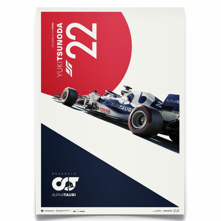 ホンダとの提携を4シーズン目を迎えたスクーデリア・アルファタウリは2021年シーズンに「AT02」を投入。第6戦アゼルバイジャンGPではピエール・ガスリーが3位表彰台を獲得。そして、F1参戦1年目となった角田裕毅も最終戦アブダビGPでは自身最高位フィニッシュとなる4位入賞を果たしました。今回のドライバーズポスターは、世界限定1000枚のみ(シリアルナンバーつき)となっており、スクーデリア・アルファタウリおよび、各ドライバー公認のオフィシャル商品として認定されているお墨付きのポスターです。