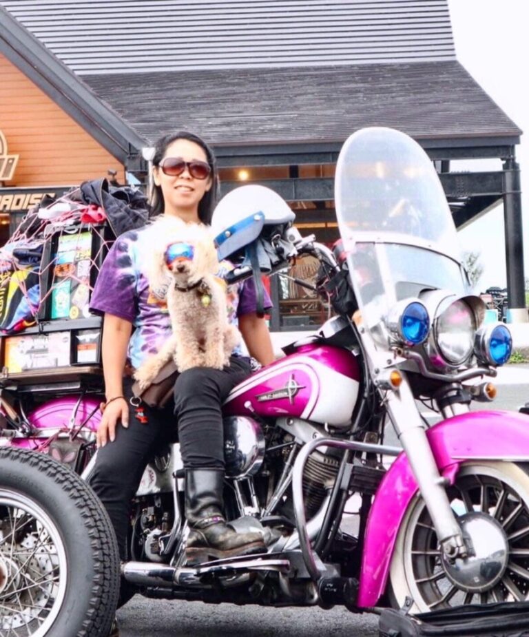 ちなみに、革職人のnoriさんは生粋のハーレー乗り。ご主人や仲間同士でよくキャンプにも出掛けるそうです。そして、いつも一緒にお出掛けしている犬のレン君は看板犬でもあるそうです。