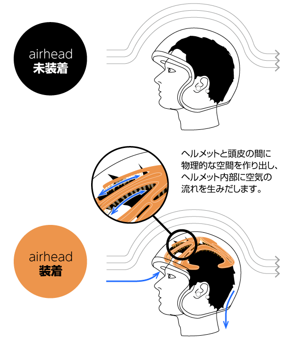 そういったへルメットの問題を軽減するよう考案されたアイテムが、オーストラリアのTWO WHEEL COOLS社からリリースされている「エアヘッド」です。