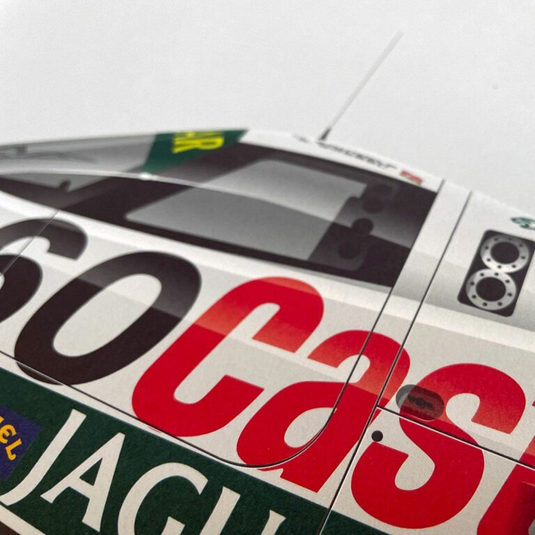 ポルシェ勢による勝利がずっと続いていたデイトナ24時間レースに終止符を打ったのが、ジャガーでした。TWR(トム・ウォーキンショー・レーシング)が手掛けたジャガー XJR(グループCカー)は、1986年からデビューを果たし、1987年 WSPC(世界スポーツプロトタイプカー選手権)でチャンピオンを獲得。XJR 8の発展型となる新型XJR-9を1988年のデイトナ24時間レースに投入。ジャガーはエントリー台数で圧倒する宿敵ポルシェとのマッチレースとなり、カストロールカラーのブランドル / ボーゼル / ニールセン組のジャガー XJR 9D(60号車)が、2位のポルシェに1周差をつける形で、トップチェッカーを受けました。