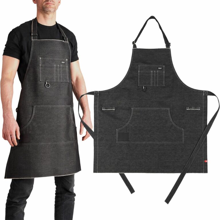 ハードな作業にも十分耐えられる、カンディアーニ社の13オンスデニムを使用した作業用エプロン。