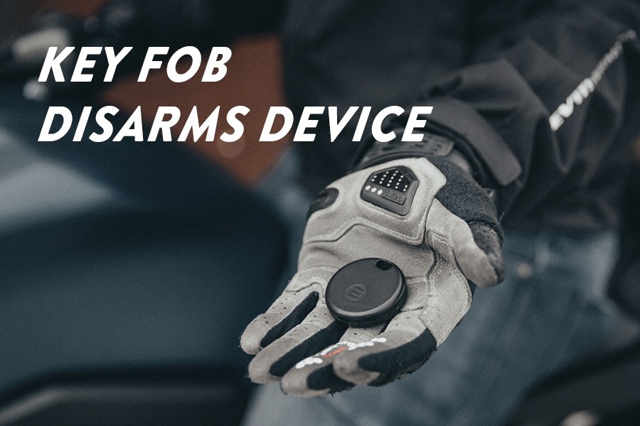 Monimotoはキーが近づいたことを感知すると自動でアラームがオフになります。バイクに乗るときに毎回スマートフォンからオフにする必要はありません。キーはライディングジャケットのポケットなどに入れるのが良いでしょう。紛失を防ぐため、バイクのカギとは別に保管するのが良いでしょう。