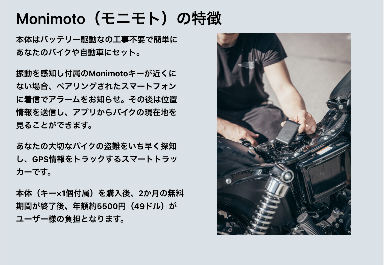 人気バイク系ユーチューバーもMonimotoをレビューしており、そのシンプルでありながらも実用性の高い機能は折り紙付き。
