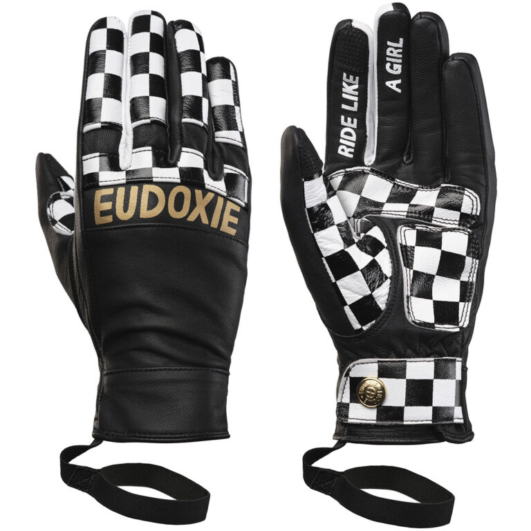 ブラックとホワイトの市松模様が絶妙な女性向けライディンググローブ。