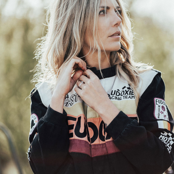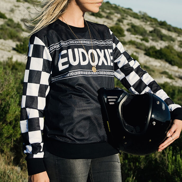スタンダードな女性向けバイクウエアはいくつも存在するものの、もっと女性らしさを表現したバイクウエアが欲しい、という彼女たちの想いからEUDOXIEが立ち上げられました。EUDOXIEでは、"Ride like a girl!"をテーマに、自らデザインしたウエアやグローブ、Tシャツなどを幅広く展開していきます。