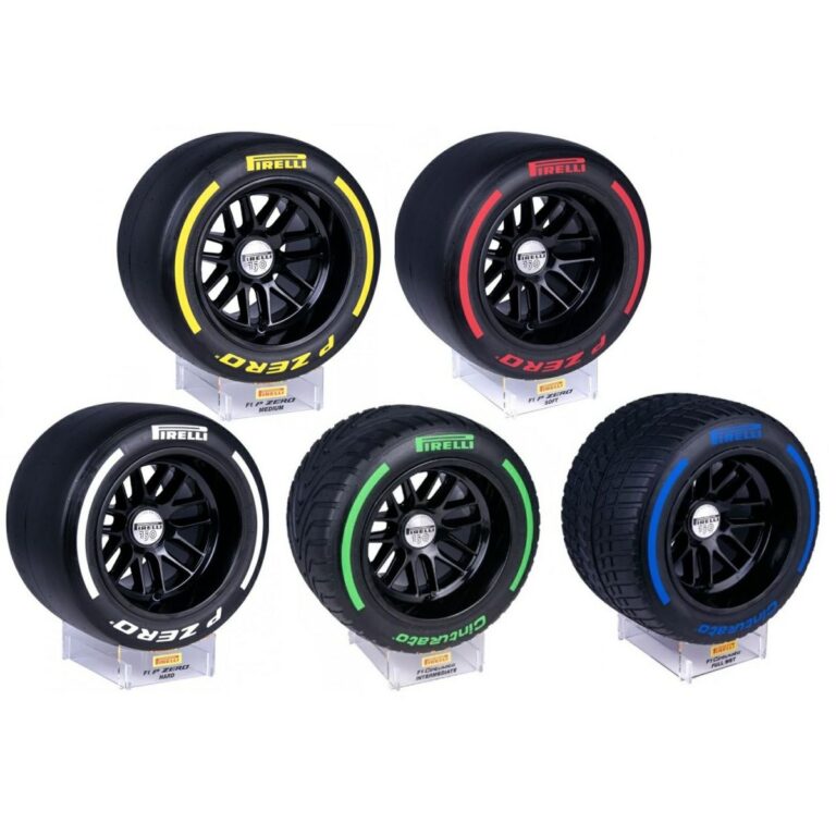 レギュレーション変更により、2022年シーズンから供給される18インチサイズのF1タイヤとホイールを再現。F1マシンの風洞実験でもこの1/2スケールのタイヤが使用されています。ホイールの中央にはピレリ創業150周年を記念したセンターキャップが備わっています。