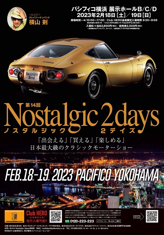パシフィコ横浜 展示ホールにて、2023年2月18日(土)から2月19日(日)の2日間にかけて開催される「Nostalgic 2days(ノスタルジックツーデイズ)」に出展致します。