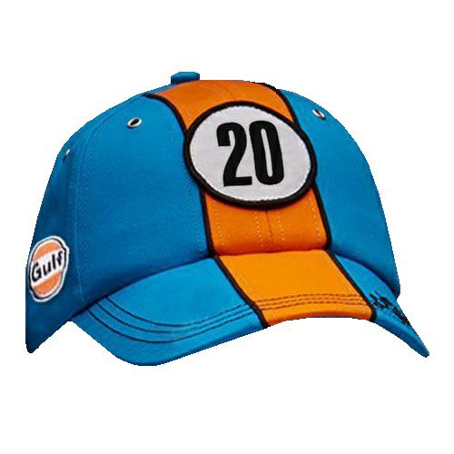 オレンジのレーシングストライプに20のサークルゼッケンがあしらわれた、ガルフオリジナルのラッキーナンバーキャップ。