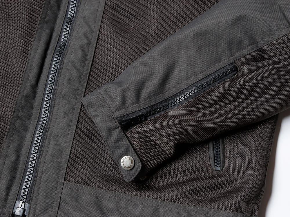 耐摩耗性・耐引裂性のあるテクニカルファブリックと通気性の良いメッシュ素材を組み合わせたボンバースタイルのメッシュジャケットです。暑い季節でも快適に過ごせるこのジャケットは、取り外し可能なCE認定プロテクターが肩、肘、背中に装備されており、安全性にも配慮。腰部と袖口は調節可能なストラップが付いており、理想的なフィット感を得られます。また、ジャケット内外には便利なポケットが複数配置されています。