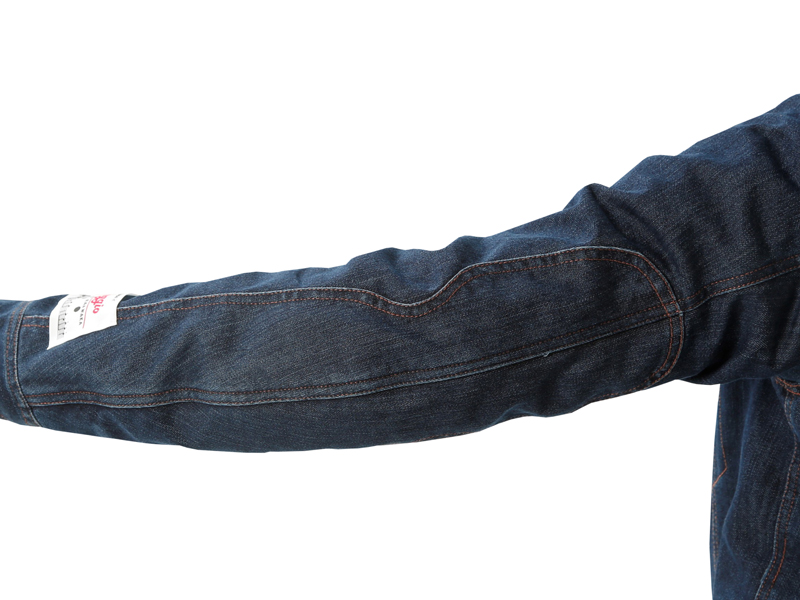 商品説明:腕の可動域が通常の服よりも多く、服が体へ与える負荷が少ない構造のGジャンタイプのライディングブルゾンです。