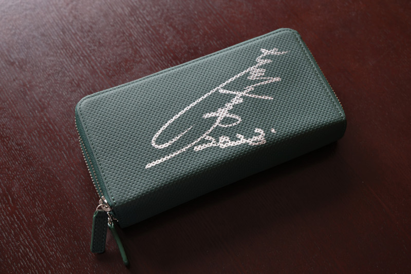 今回のコラボレーション企画が実現した経緯は、土屋氏が韓国へ行かれた際に現地でオーダーしたという、ダブルファスナータイプの長財布が古くなってしまい、次の新しい長財布を探し求めていたところ、ノイインテレッセのサポートを受けている織戸学氏から紹介を受けたことがきっかけ。土屋氏イチオシのダブルファスナータイプの長財布に加え、シングルファスナーの長財布、さらにコンパクトで便利な小銭入れの3種類がラインナップ。カラーは土屋氏のシンボルカラーであるグリーンと、現役時代から長らく携わっているARTAのチームカラーに近づけたオレンジレッドの2カラー。財布の形状からカラーに至るまで、全て土屋氏が監修に携わった、"ドリキン"モデルとなります。