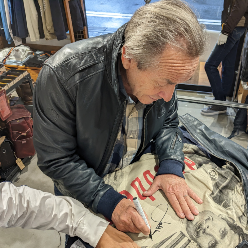 そこで今回のコラボレーションモデルとなるレザージャケットのインナーに、イクス氏ご本人による直筆サインを入れていただきました。数量限定となりますので、是非この機会にお求めください。
