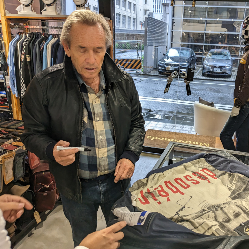 先日、お仕事の関係で日本へ来日されていた際に、イクス氏ご本人がモトーリモーダ銀座店へご来店いただけることになり、我々スタッフも緊張の面持ちでお迎えしましたが、終始フレンドリーに接してくださり、ひとつひとつのサインを丁寧に応じていた姿は、マシンを労わりながら速く走らせる"耐久レース"に通ずるものを感じさせてくれました。