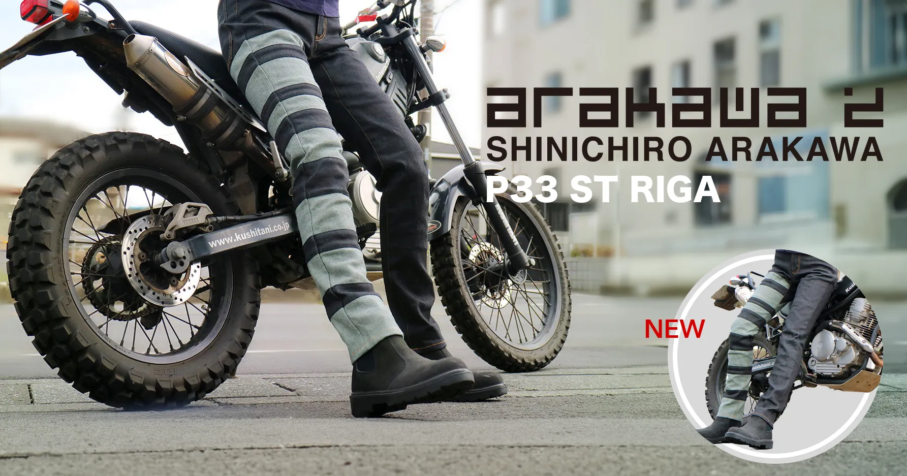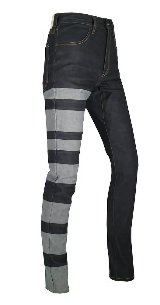 表地にはステッチ性が若干あるムラ糸デニムを使用。膝部にはクシタニ製のプロテクターが装着できるポケットが備わっています。