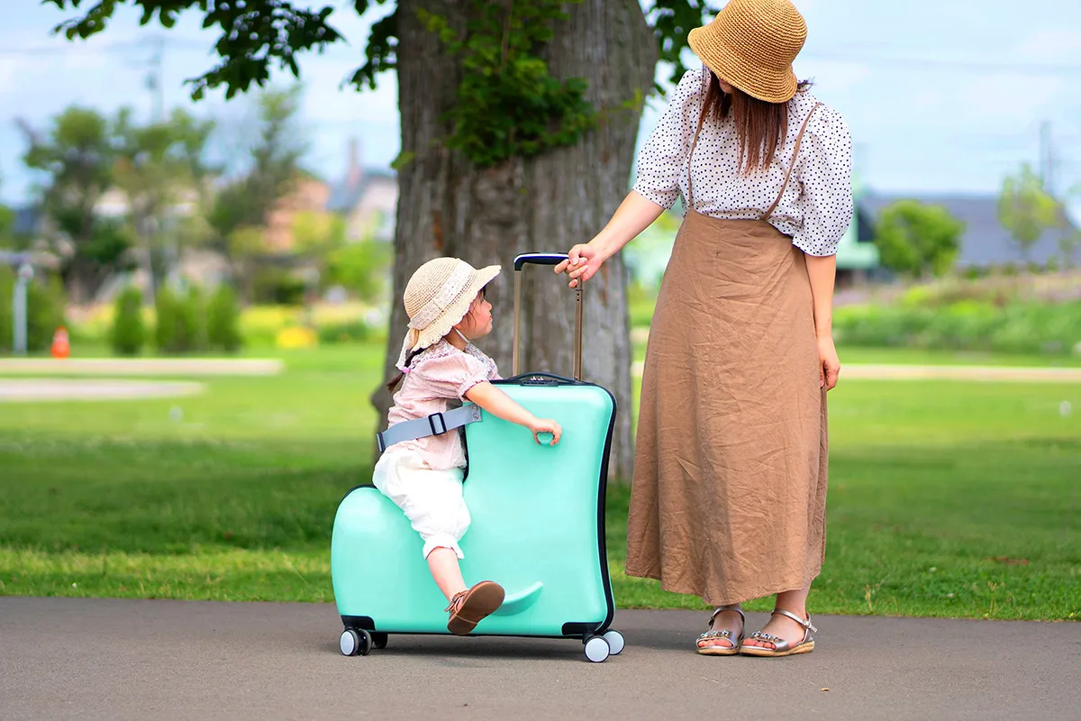 「待ち時間も移動ももっと楽しく!」そんな願いを叶えるお子様専用の"乗れるキャリーケース"誕生しました。