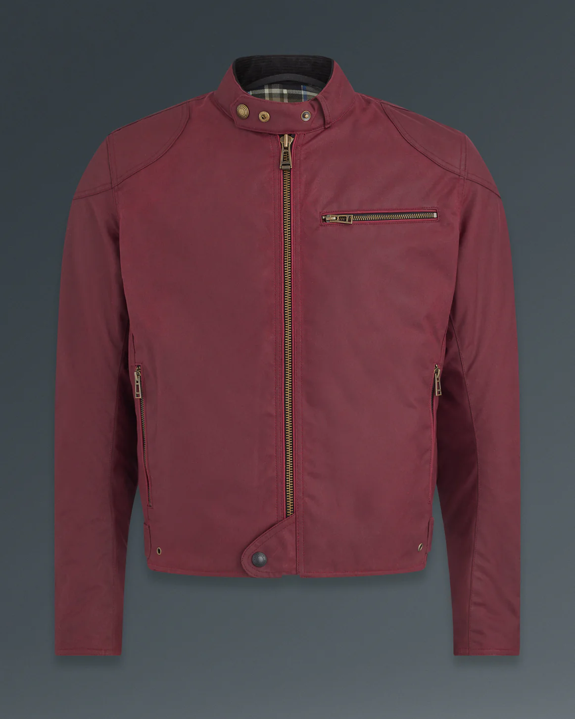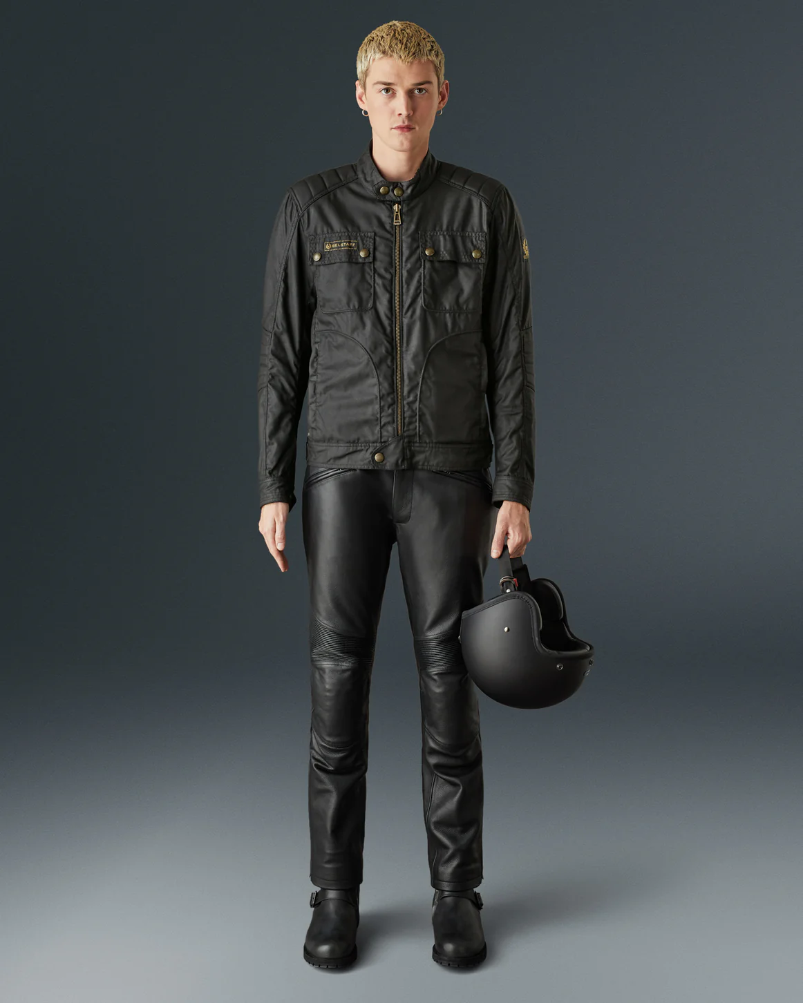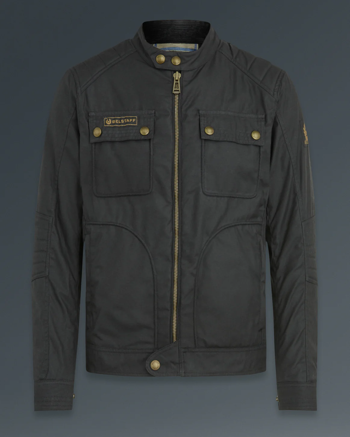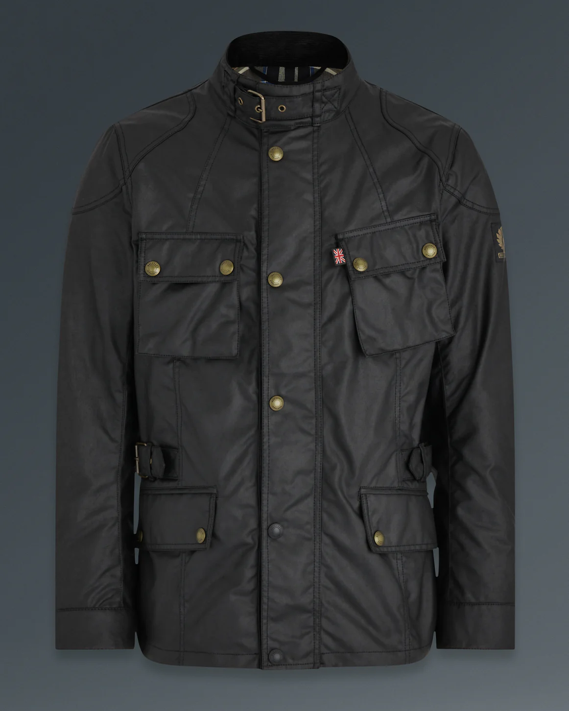 ベルスタッフの定番レザーライダースのデザインを基に、より軽量で快適な着心地を追求したワックスコットン製ジャケット。