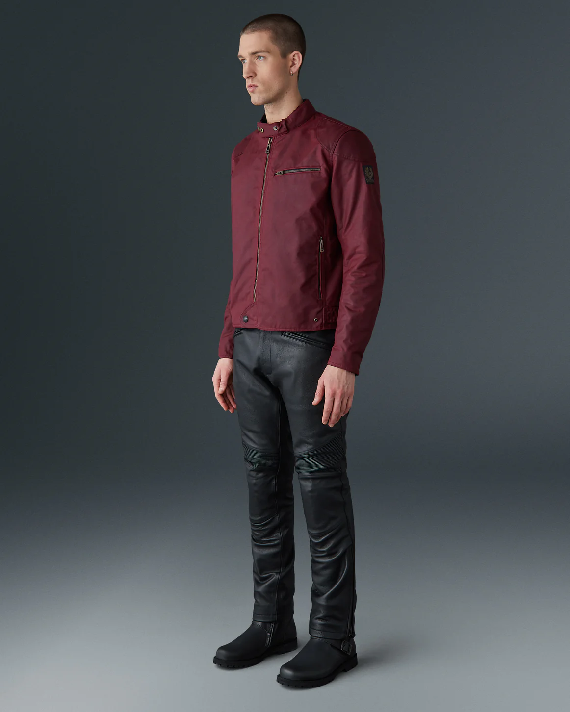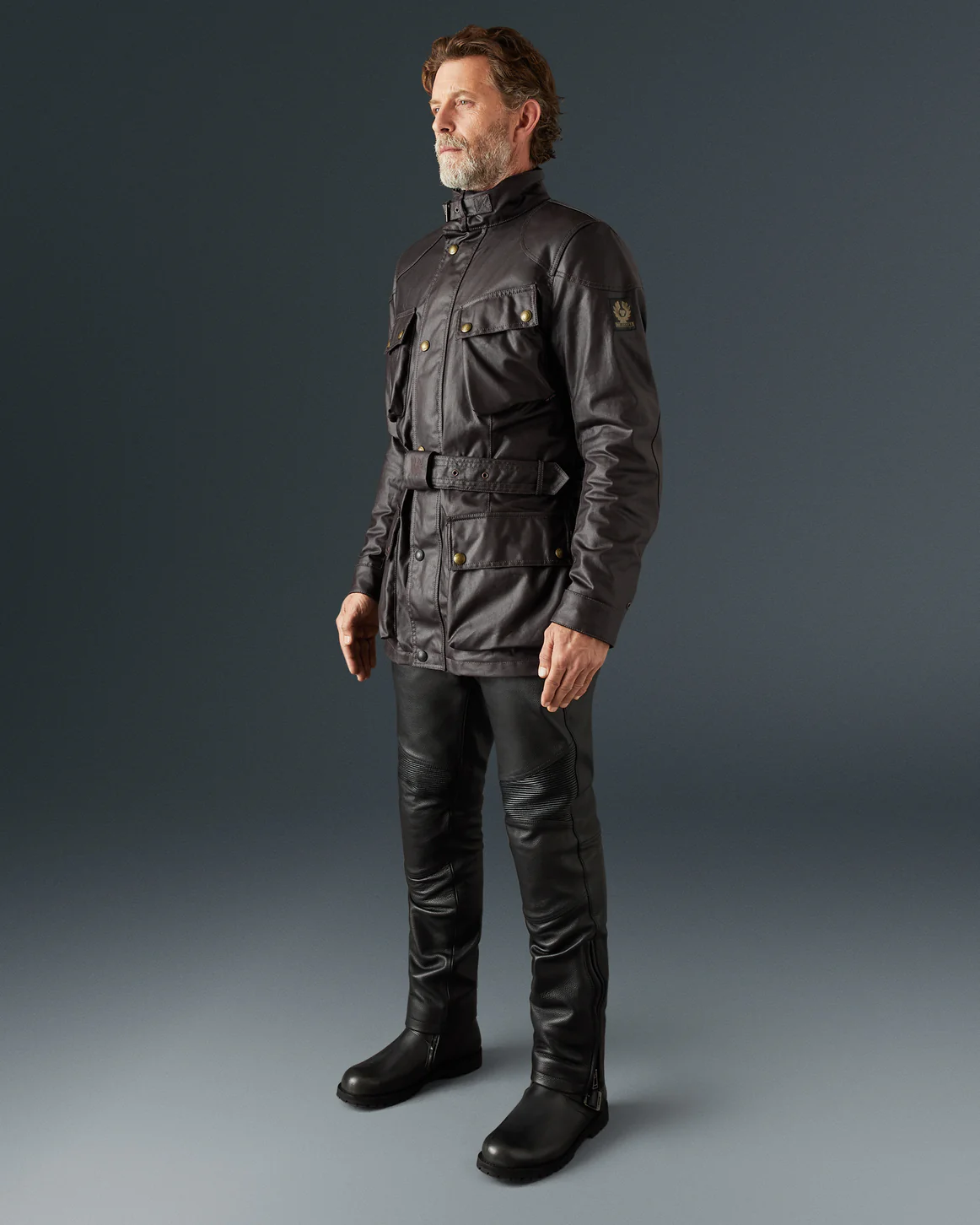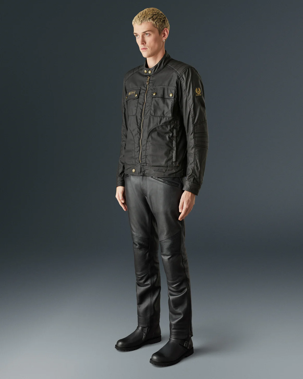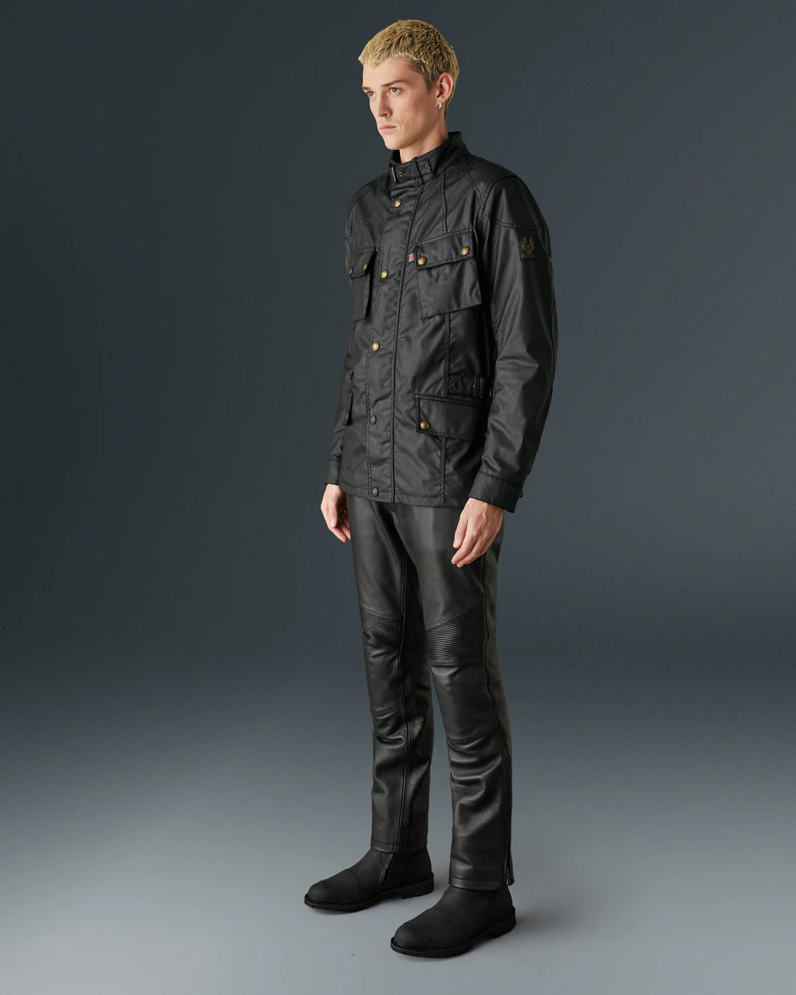 ベルスタッフの定番レザーライダースのデザインを基に、より軽量で快適な着心地を追求したワックスコットン製ジャケット。