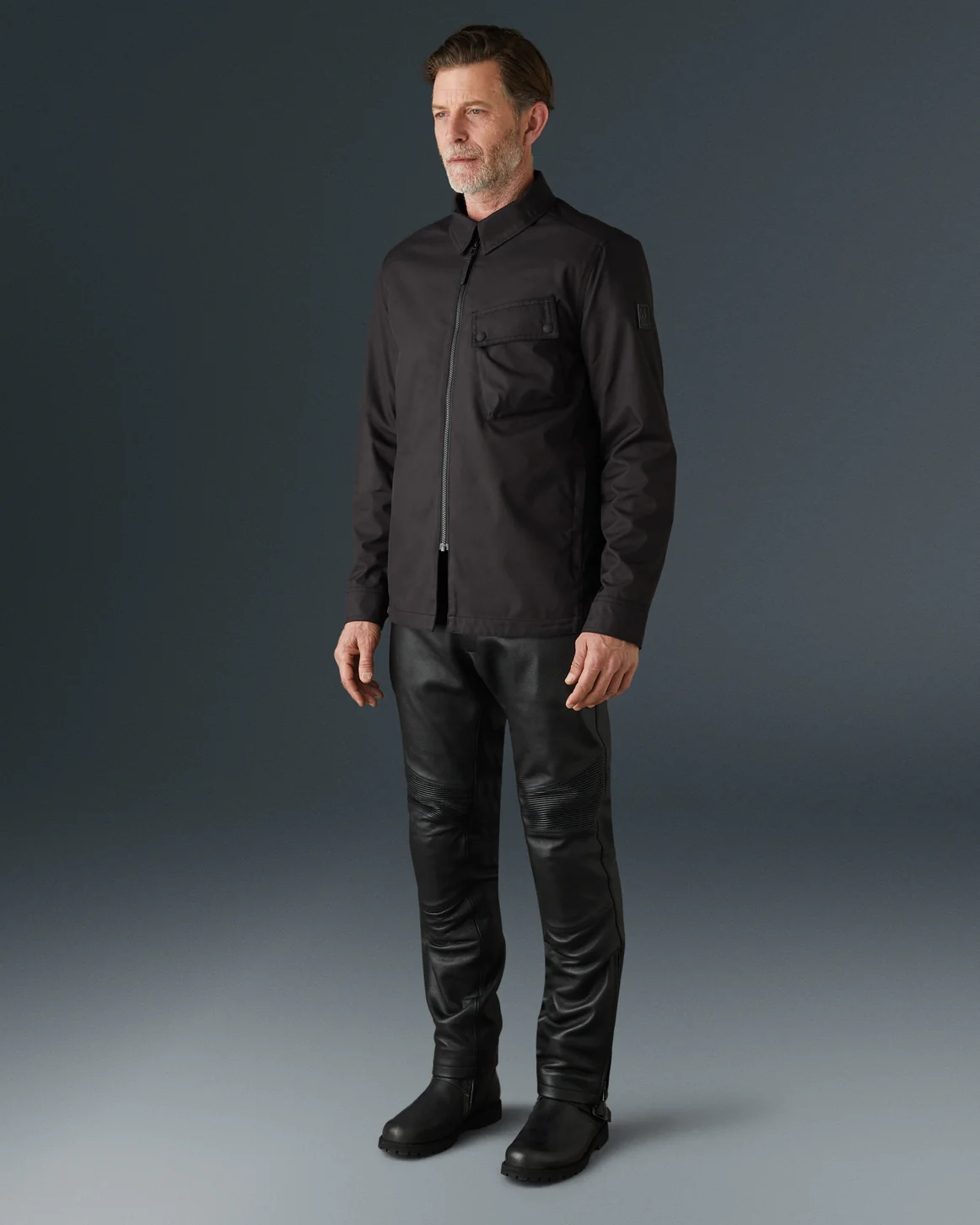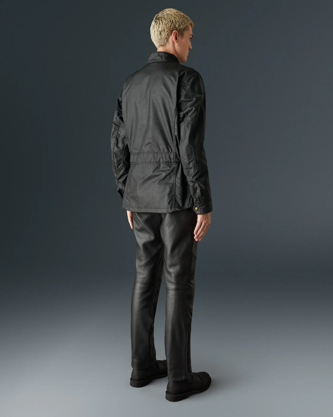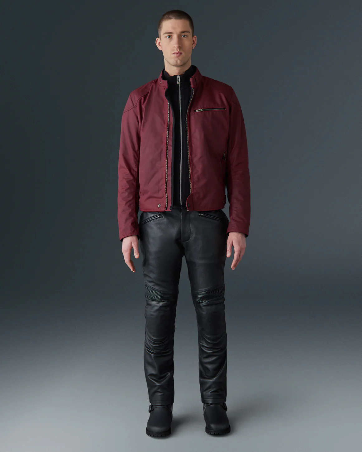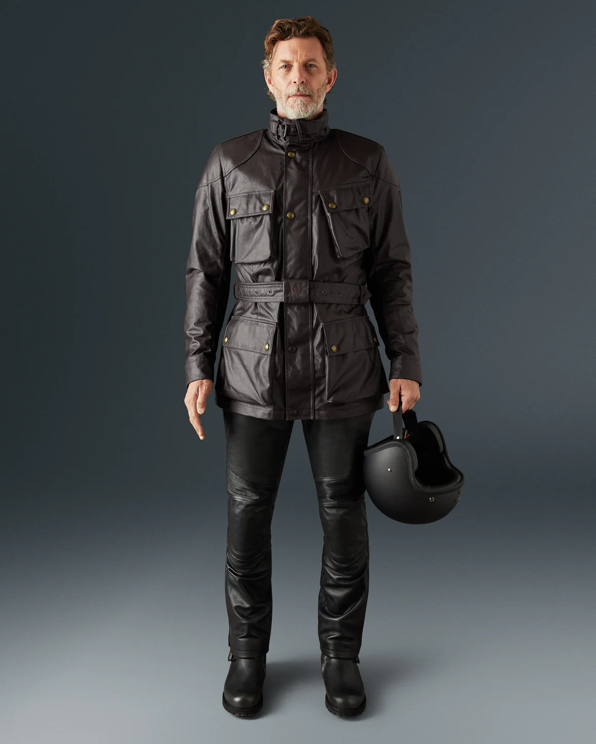 ベルスタッフの定番レザーライダースのデザインを基に、より軽量で快適な着心地を追求したワックスコットン製ジャケット。