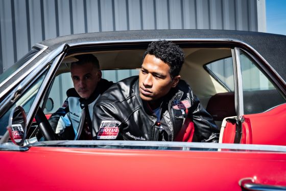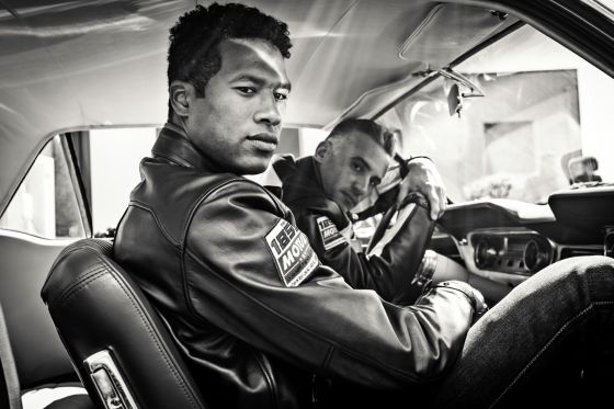 手作業で繊細にカットされた二本のストライプがレトロな中にもスポーティな印象を形造り、そのコントラストがこのジャケットの魅力を最大限に引き立てています。左腕にはMotulのアーカイブから取り入れた、これまでにない独特のバッジが配置されています。